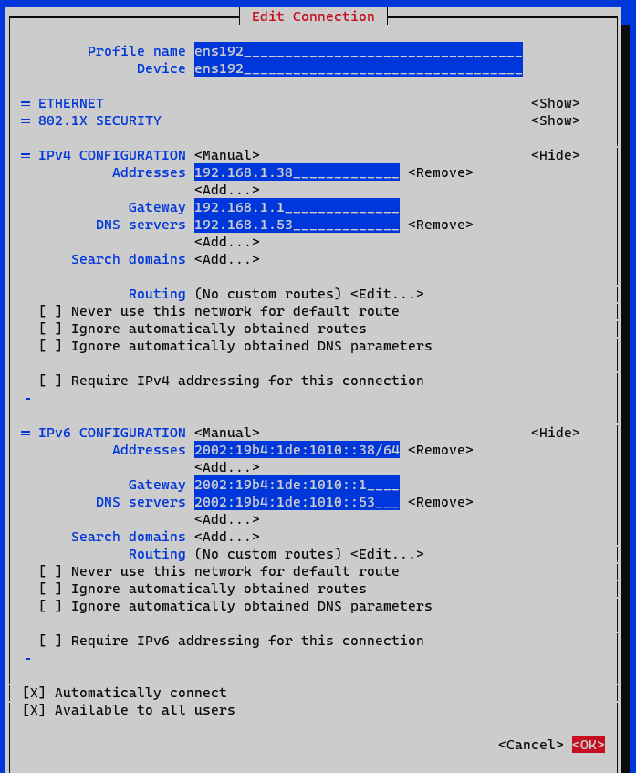Rocky Linux 8/9 using NetworkManager (nmtui)